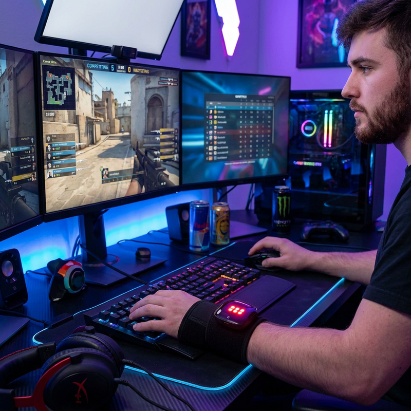 After thousands of hours at your battlestation, the aching that used to fade between matches is now constant. The numbness starts earlier every session. And every night, you're flexing your fingers in bed — testing your grip — wondering how much longer you can keep this up.